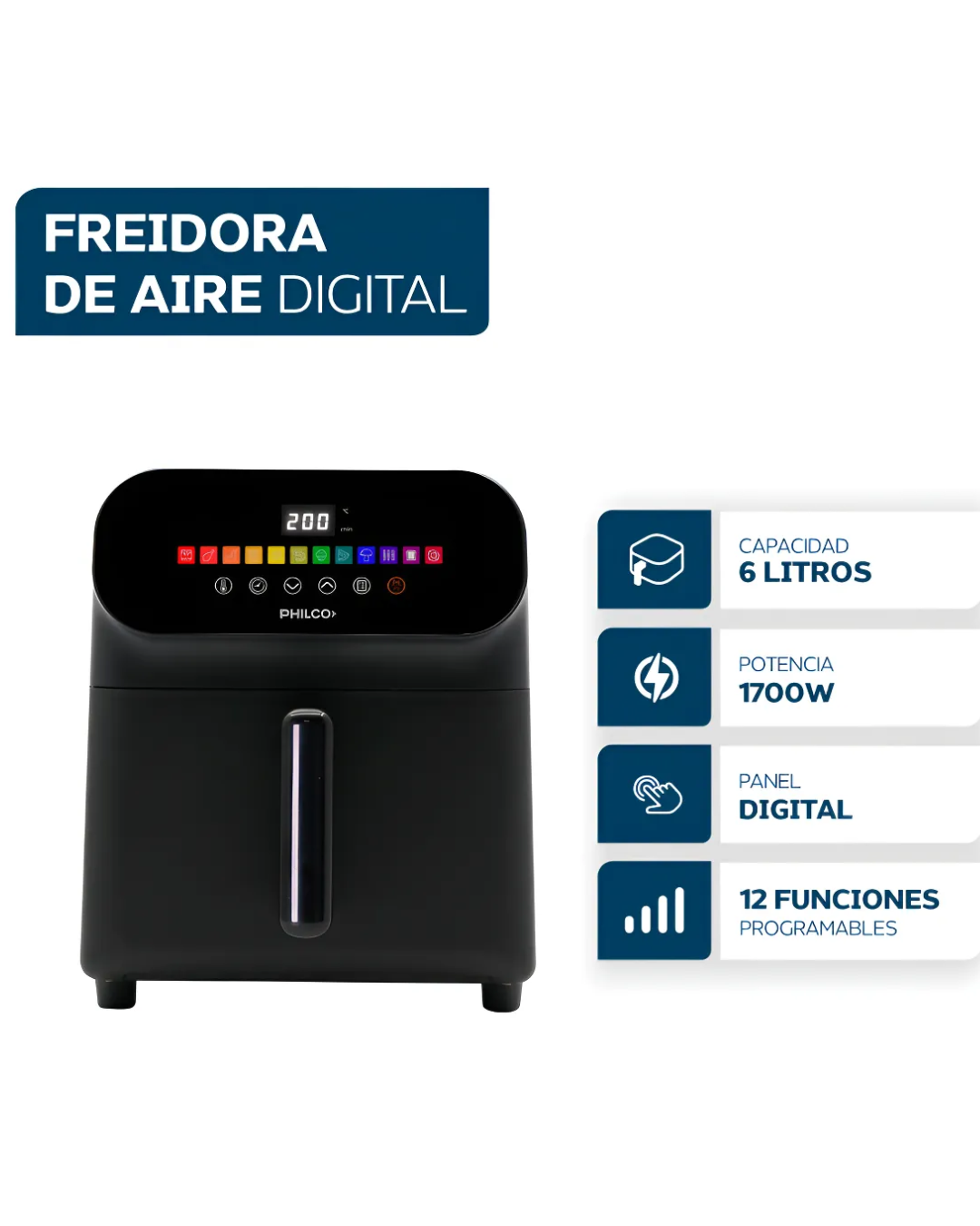 Freidora De Aire Philco Fr256ph 1700w 6 L 12 Programas De Cocción Negro